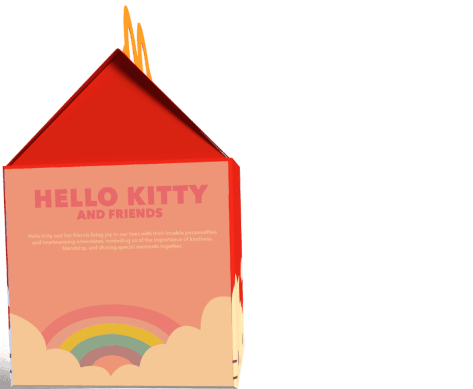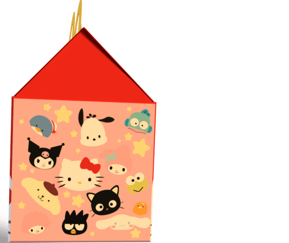 By collaborating with Sanrio, McDonald’s can launch a limited-edition Happy Meal that appeals to both kids and nostalgic collectors. The design blends Sanrio’s pastel aesthetic with McDonald’s classic branding for a fresh, elevated experience. A mystery character keychain adds surprise and collectibility, driving repeat purchases. Overall, the collaboration reinforces both brands’ focus on joy, nostalgia, and memorable experiences.